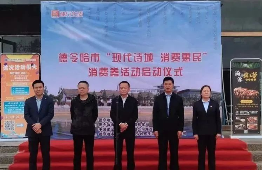 2023年4月17日下午,由德令哈市政府主办,德令哈市工业科技和信息化局、建设银行海西州分行承办的德令哈市“现代诗城 消费惠民”政府消费券发放活动启动仪式在德令哈市乐生活购物广场门前举办。德令哈市副市长刘春雷同志、海西州分行党委副书记韩永德同志、党委委员沙成香同志、德令哈市工业科技和信息化局副局长程翔同志参加。刘春雷副市长在活动现场致辞,并宣布“现代诗城 消费惠民”消费券发放活动正式开始。